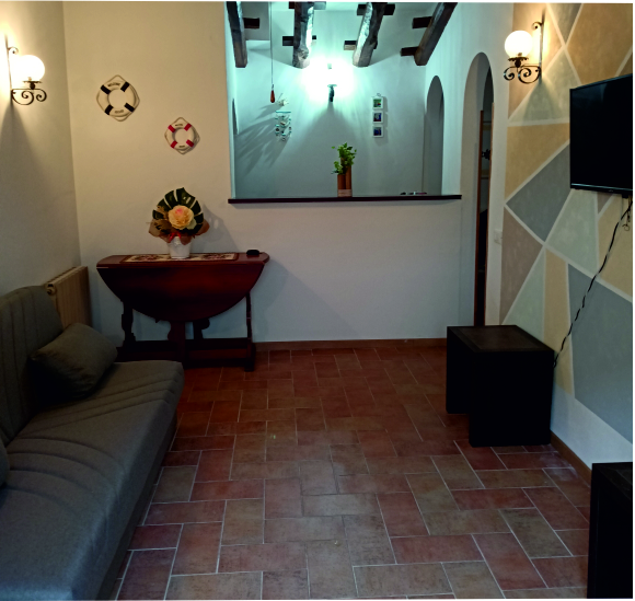 Il soggiorno dotato di un comodo divano, ideale per rilassarsi, guardare un film o leggere un buon libro.