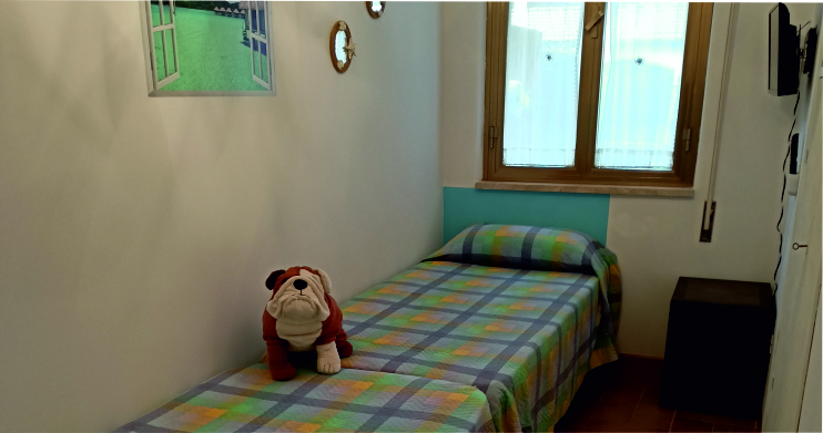 La camera matrimoniale con un ampio letto, una singola e una camera doppia, silenziose e confortevoli.