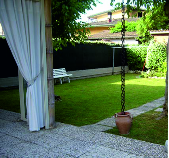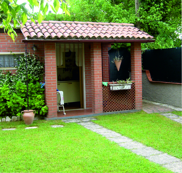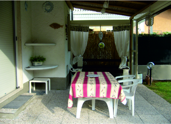 la veranda attrezzata e tanta vegetazione sono il cuore